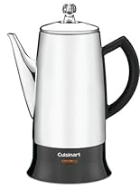 Cuisinart brings its coffee-making expertise to the 12-cup model of our classic stainless steel percolator. Piping hot water percolates through the grounds, and pulses up into the glass knob on top to create the familiar "perk-perk" sound that coffee lovers love