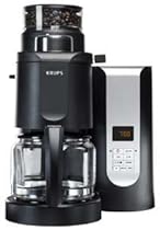 Krups has mastered the key components to the perfect cup of coffee: the grind, the coffee-to-water ration, the brew temperature and contact time. Conical burr grinders are recognized by coffee connoisseurs as the very best method of preparing whole beans for brewing. The Krups KM7000 with 1000 watts has solid steel burrs that turn slowly to protect the flavor of the beans, providing the ultimate coffee results. The brew basket lid closes automatically after grinding to prevent steam from reaching the coffee channel and grinder, thus preventing clogs. In addition, the Krups KM7000 features a conical burr grinder with an automatic functionality; it grinds the coffee to match the number of cups and the strength chosen. The Krups KM7000 conical burr grinder has 5 levels and 3 settings for optimal coffee strength; has a 2, 4, 6, 8 or 10-cup digital settings that control the coffee-water ration; has an aroma function for 2 -4 cups for proper brewing of small coffee quantities; an anti -drip valve for the pause and serve feature; water filtration; high quality 10 cup glass carafe and backlighted LCD with clock and programmable timer.